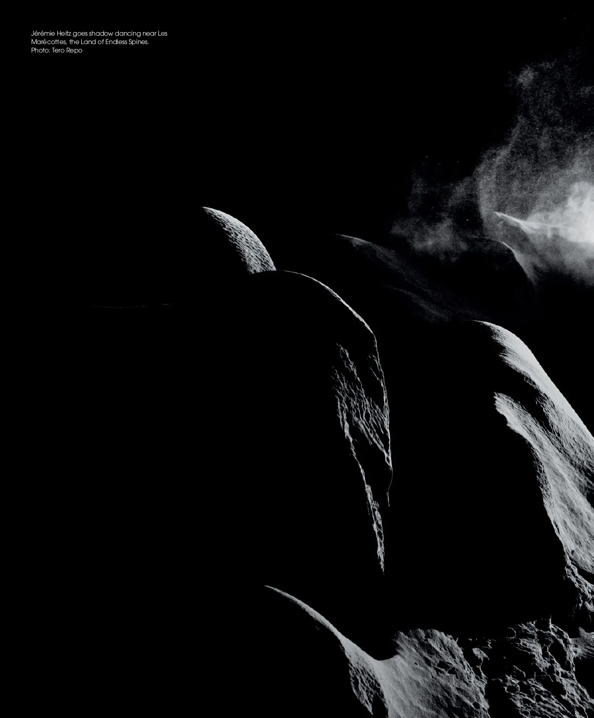 Jérémie Heitz goes shadow dancing near Les Marécottes, the Land of Endless Spines. Photo: Tero Repo